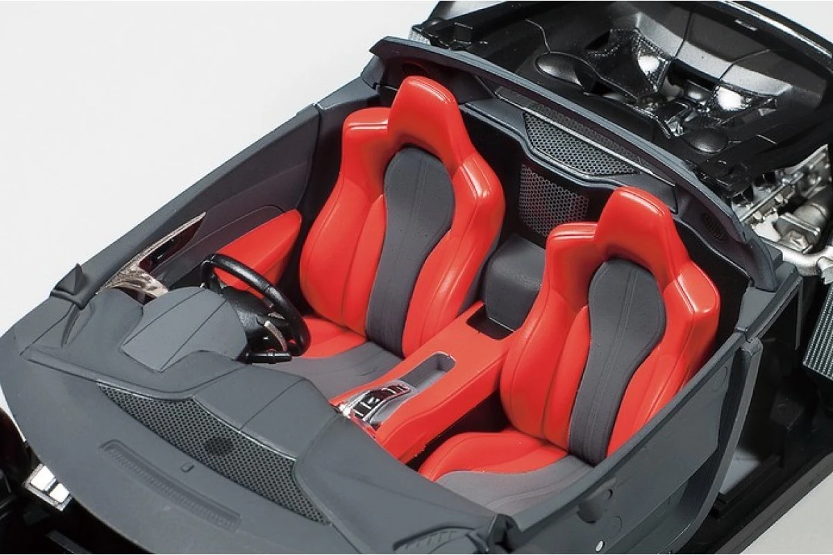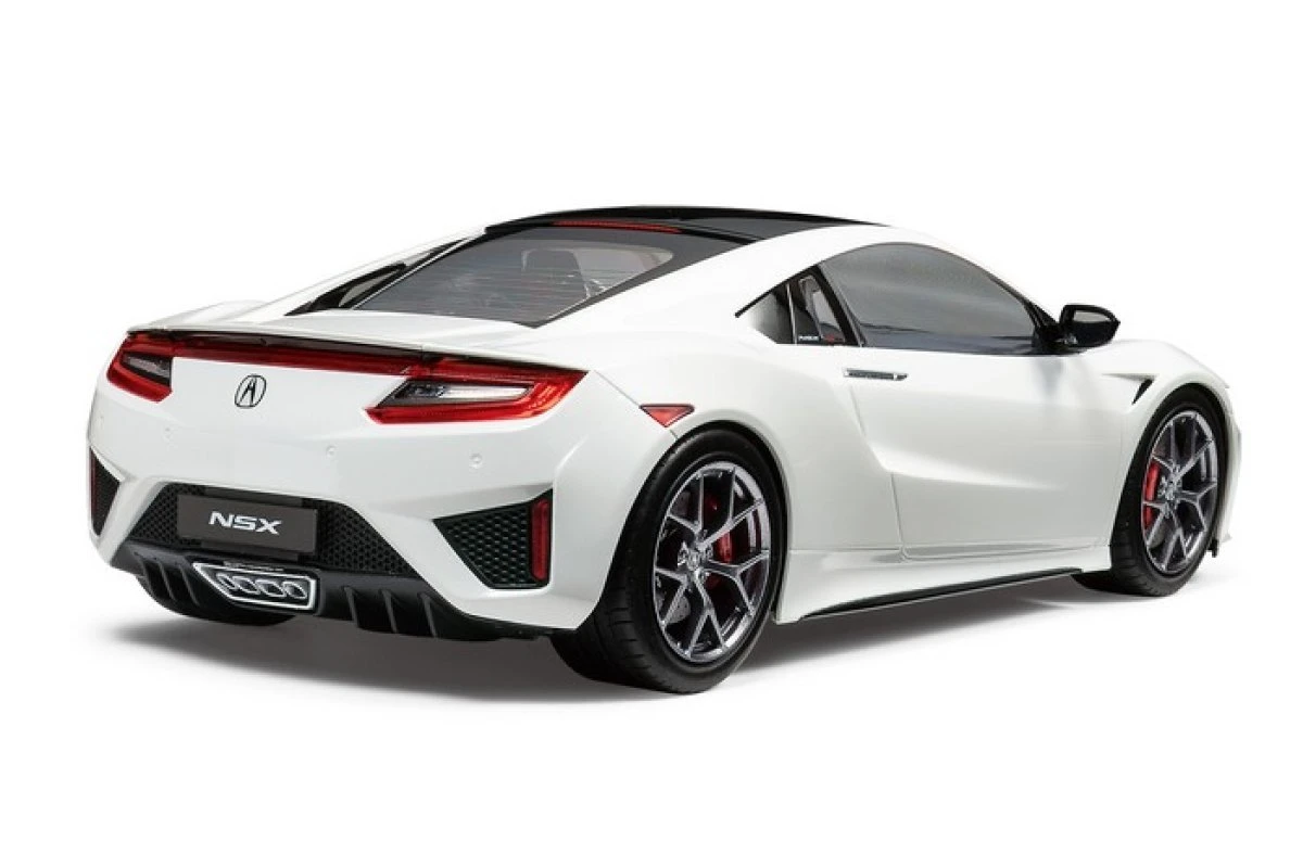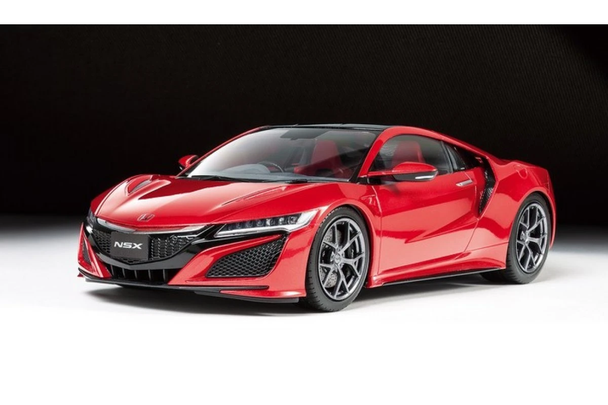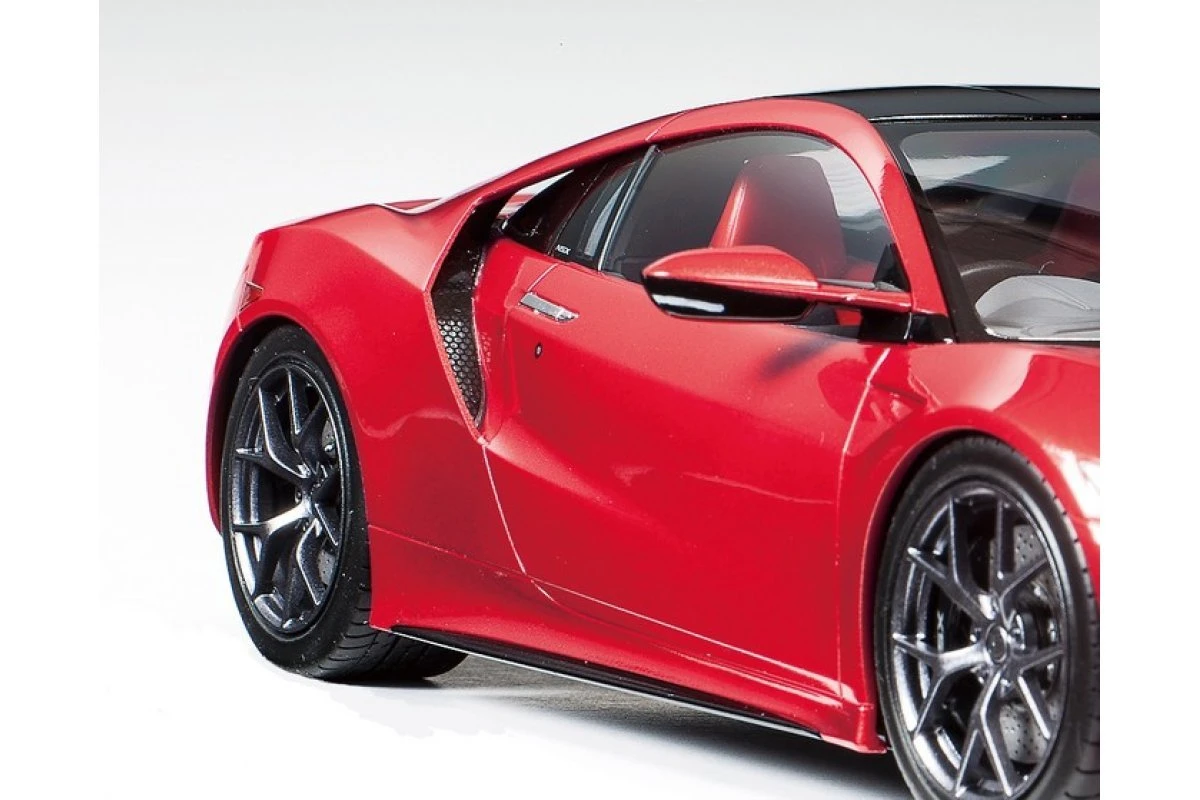 This plastic assembly kit model recreates the NEXT GENERATION NSX supercar. The full-size car is a highly technical and utterly thrilling supercar. With weight-saving construction, a hybrid powertrain that has three electric motors and a mid-mounted twin-turbo 3.5-liter V-6 making a combined output of 573 HP, the NSX offers pulse-pounding performance paired with everyday usability. The power plant is mated to a nine-speed dual-clutch automatic, which moves an all-wheel drive train.