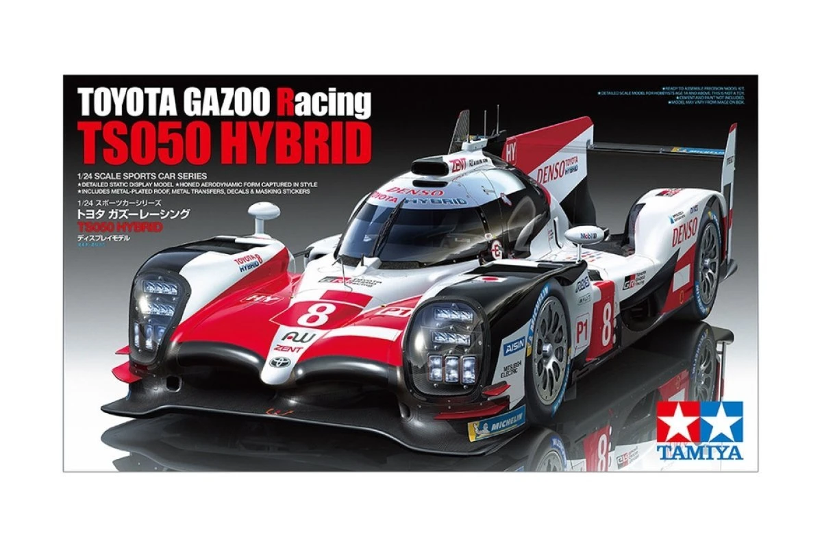 This Tamiya 1/24 scale model replica recreates the 2018 TOYOTA GAZOO Racing TS050 Hybrid car, which made a huge splash in the racing world thanks to a refined design with great aerodynamics and a hybrid powertrain pairing a 2.4-liter engine and lithium-ion battery. In 2018 they became the second Japanese car manufacturer to win the 24 Hours of Le Mans with Toyota scoring a 1-2 finish!