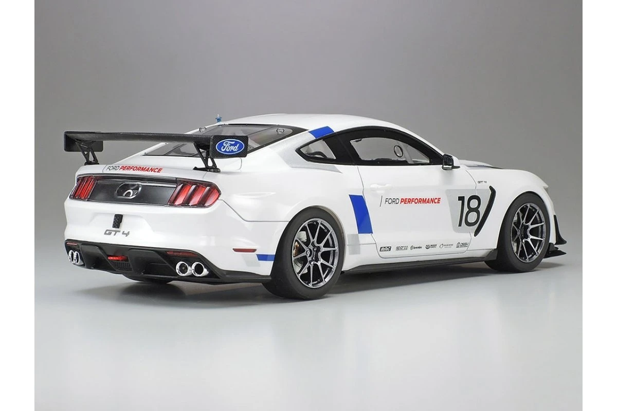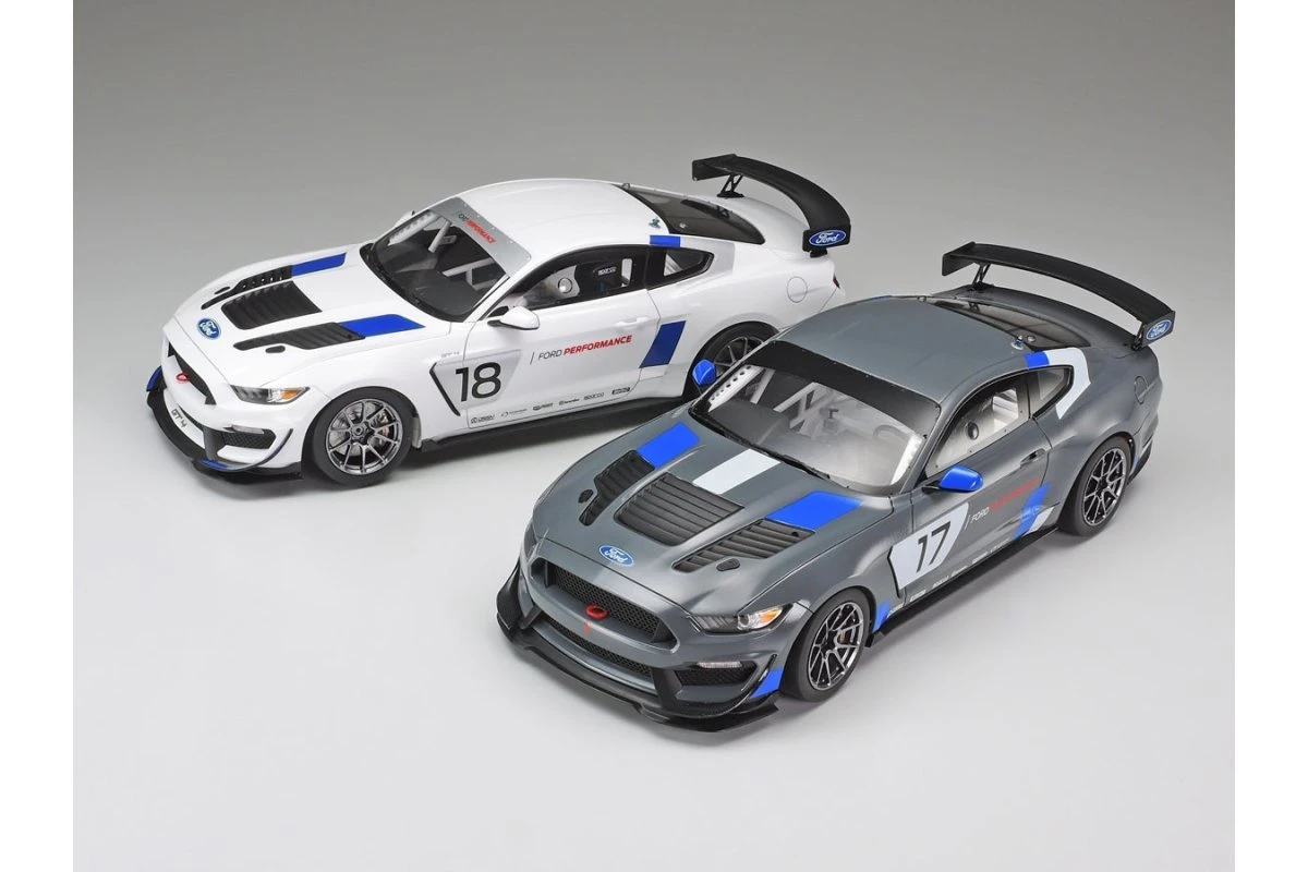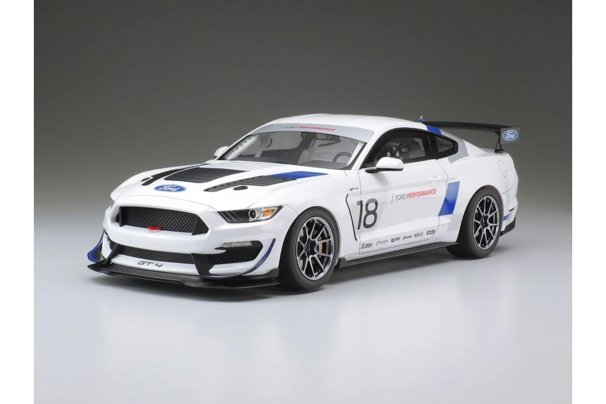 Tamiya 1/24 scale sports car model kits go together like no other in the hobby. Simply put, they are the benchmark on how kits should easily go together. This kit recreates FORD’s PERFORMANCE customer race program Ford Mustang GT4 race car. The actual car is a race-ready powerhouse featuring honed aerodynamic form with front spoiler, rear wing and diffuser, high performance brakes, lightweight carbon fiber vented engine hood, roof, door panels and more, plus a big 5.2-liter V8 engine in the front. The model depicted in this kit recreates the 2019 spec car with two Factory Livery schemes in one kit!