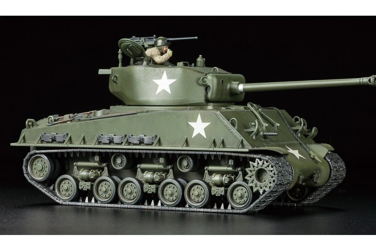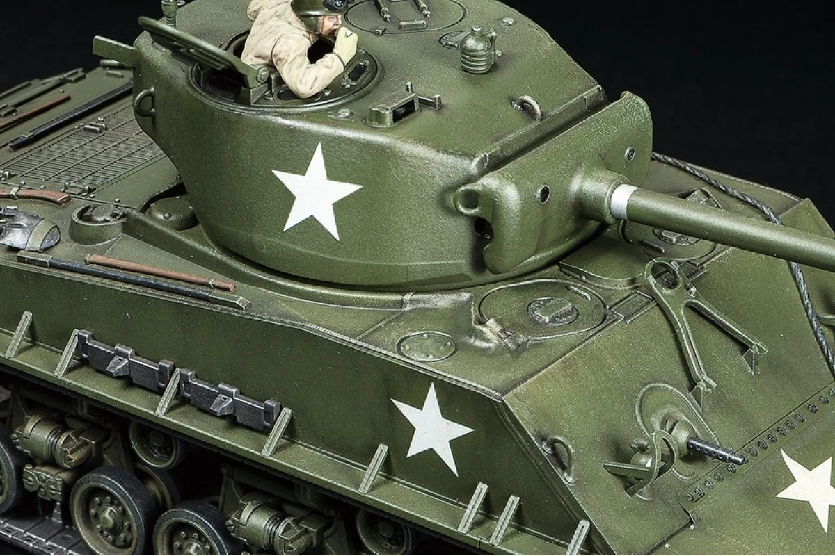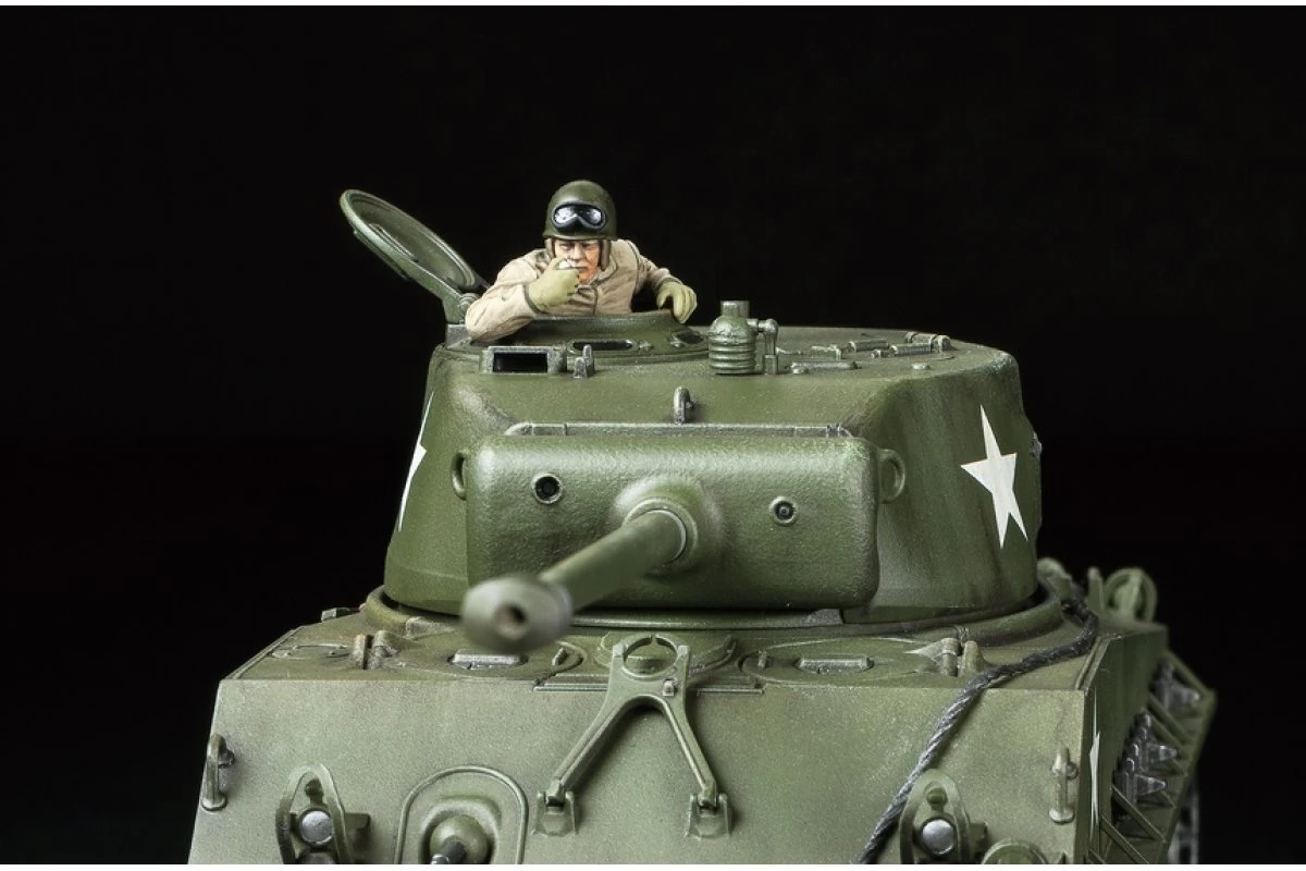 This 1/48 scale model recreates the M4A3E8 Sherman “easy Eight” as it appeared in the European Theater of WWII. As it was one of the final Sherman types, it had the benefit of design updates developed from battle experience including a hardy welded late production hull, 76mm main gun, and new Horizontal Volute Spring Suspension (HVSS) with wider tracks, making for the significantly more comfortable ride that led to its nickname of “Easy Eight.”