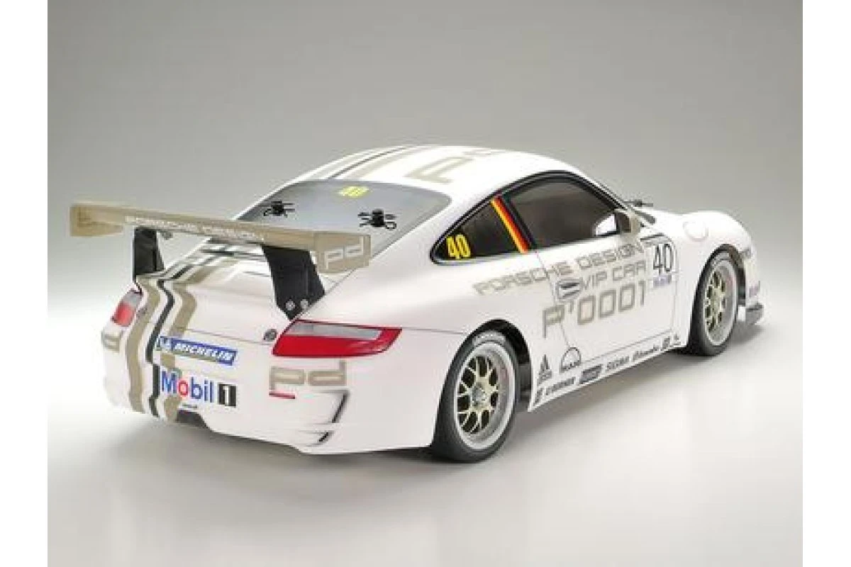 This Tamiya R/C kit faithfully recreates the Porsche 911 GT3 CUP VIP customer race car. The 911 GT3 Cup car was