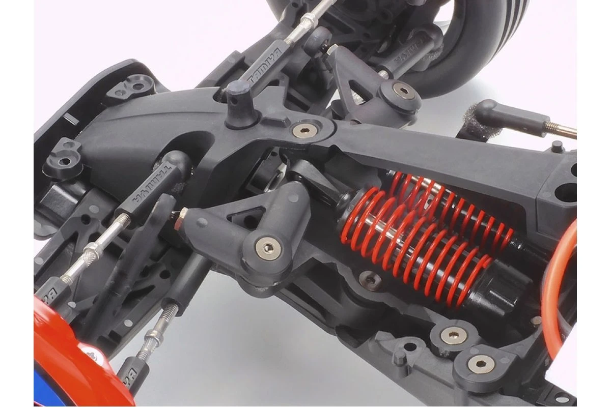 wheels are attached by hex hubs. - 4-wheel double wishbone suspension system uses CVA oil dampers for supple performance.