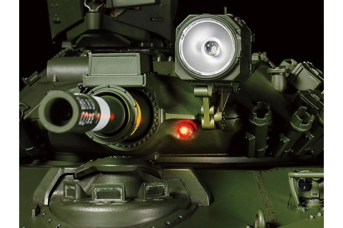 - Firing of the main gun is accompanied by an LED flash, realistic recoil, and vehicle kickback. Machine gun also produces LED flashes when fired.