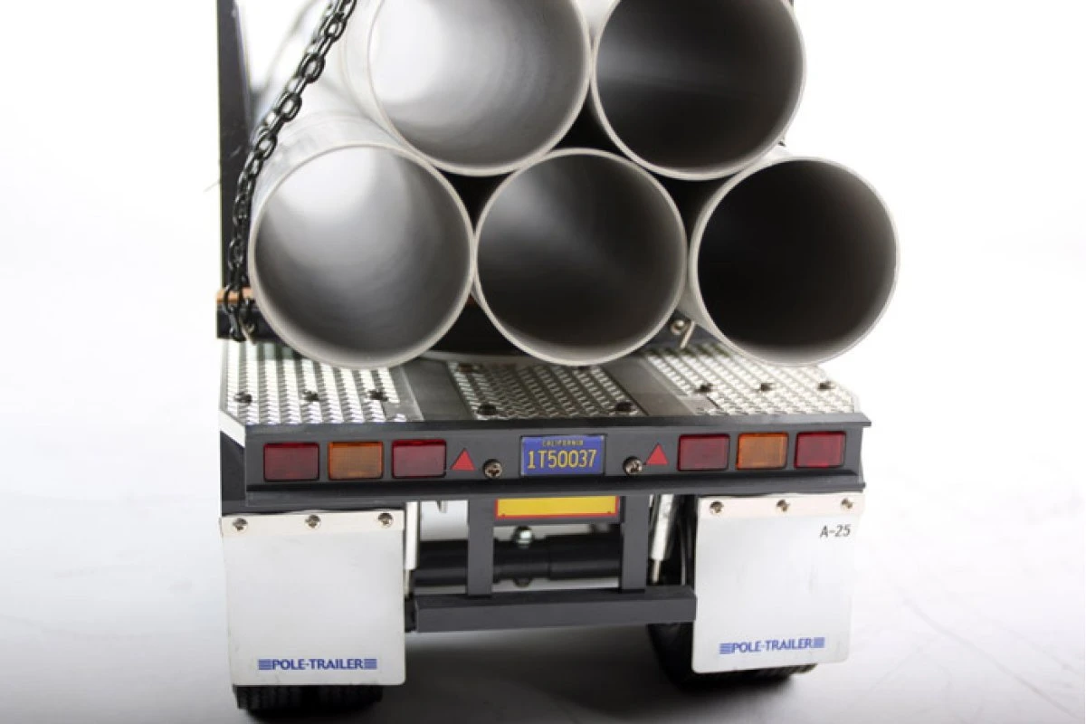 The Pole-Trailer is able to carry pipes of various lenghts due to its collapsible pole. The trailer also features an aluminum chassis and 4 highly detailed wheels. 5 plastic pipes of 55mm in diameter and 75cm in length are included.