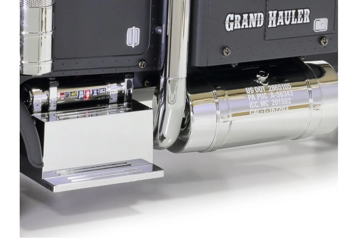 This is a special edition of the Grand Hauler. The R/C model assembly kit recreates a massive boxy, customized truck like those seen in North America. The special edition version is a great option for those without the time or confidence to apply a paint job to their kit, as the body, and other key body parts are pre-painted Metallic black (Tamiya Color TS-40). Additionally, a matte coating is applied over the metallic black which provides a cool look as seen in current trends in the automotive scene.