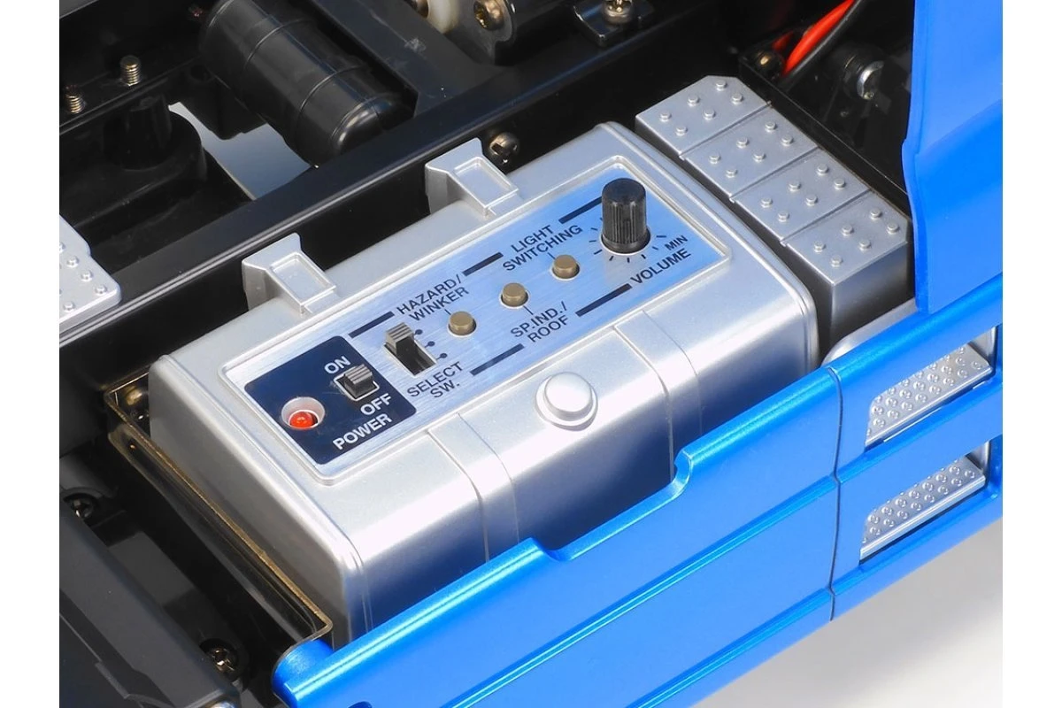 rear axles are equipped with differentials. - 3-speed transmission can be controlled to allow gear shifts via 4ch R/C transmitter.