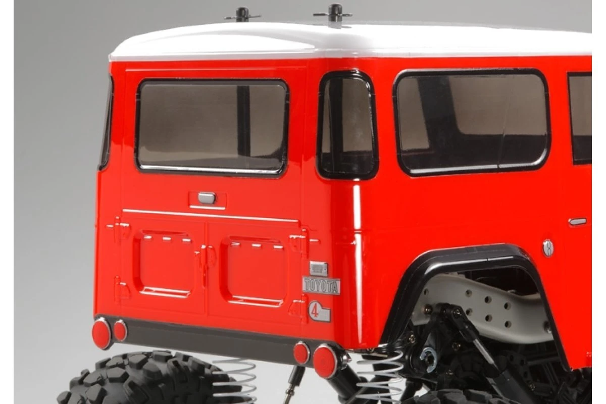 The Toyota Land Cruiser 40 was produced from 1960 to 1984 and is one of the most well-known 4×4 vehicles in the world. Tamiya has reproduced this classic off-roader as an assembly kit R/C model on the newly developed CR-01 rock crawling chassis. This chassis features a tough ladder frame with aluminum side channels and resin crossmembers, 4-link suspension with aluminum rods, a 4WD system with lockable differentials, massive off-road tires with sidewall tread pattern, and dependable beadlock wheels. The body is of course accurately reproduced in durable polycarbonate material, giving fans a superbly capable rock crawler with scale realism.