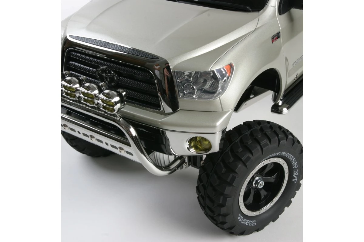 The Tamiya kit version of the Tundra offers precision molding that has given us a truly accurate reproduction of the trucks imposing, dominant form. The front grille and bumper are made of metal-plated parts that add a unique and stylish look.