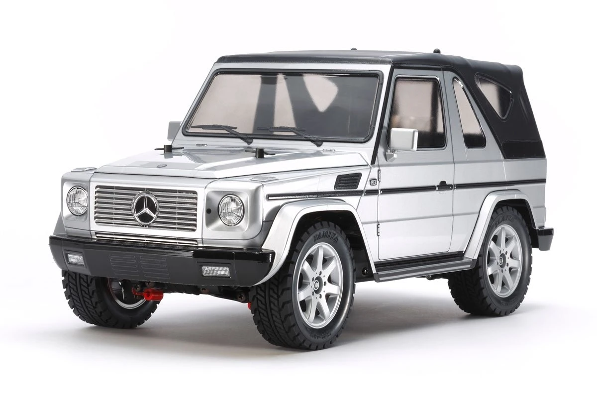The Mercedes-Benz G-Class’ outstanding durability and off-road performance have made it a firm favorite with consumers since its inception in 1979, its polished technology taken over and modernized with each generation to make it a top class SUV. This is an R/C model assembly kit of the G 320, a 2-door cabriolet produced between 1997 and 2001, and much sought-after thanks to its stylish looks and typically uncompromising G-Class performance. The body is reproduced in tough, lightweight polycarbonate, with separately molded side mirrors and metal plated grille-parts. See below for more information about the exciting new shaft-driven 4WD MF-01X chassis, which this model pairs with 7-spoke wheels and semi-pneumatic treaded tires for super performance whether on- or off-road.