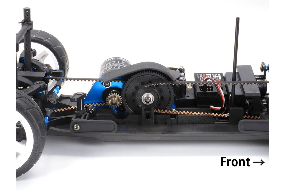 With spur gear ahead of motor, the belts are closer in length to one another, helping facilitate a stable drive with the TA08 PRO.