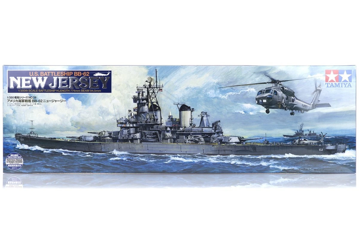 The USS New Jersey (BB-62) was the second ship of the Iowa-class and was completed in 1943. She participated in a long list of actions from WWII until the end of her illustrious career in 1991. This 1/350 scale plastic assembly model kit of the U.S. battleship New Jersey was originally released in 1984 (Item 78005) and is now available with a set of detail parts to enable the creation of an even more realistic model of this famous battleship.