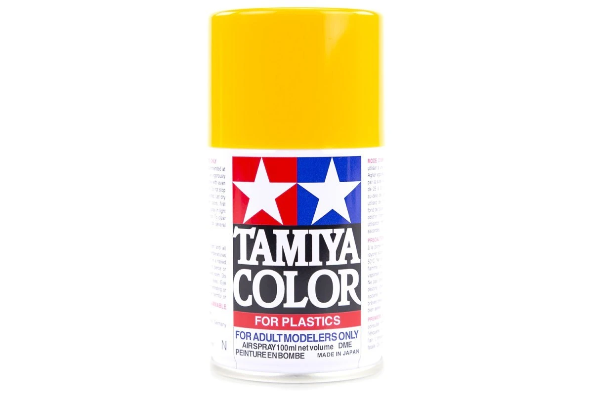 Tamiya TS spray paint is a synthetic lacquer that cures in a short period of time. Tamiya spray paints are not affected by acrylic or enamel paints & is extremely useful for painting large model surfaces. Therefore, following the painting of the entire assembly, details can be added or picked out using enamel and/or acrylic paints. Each can contains 100ml of paint, which is enough to fully cover 2 or 3, 1/24 scale sized car model bodies.